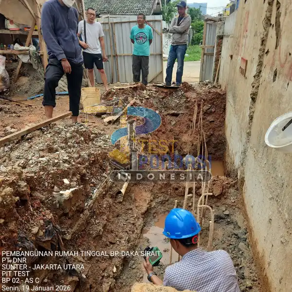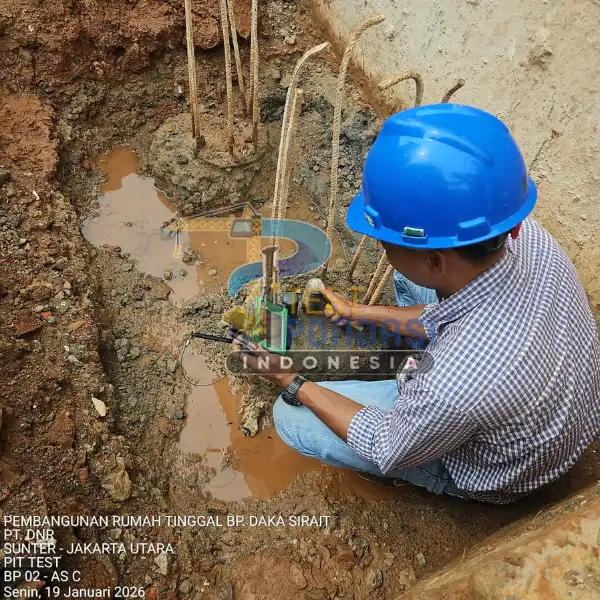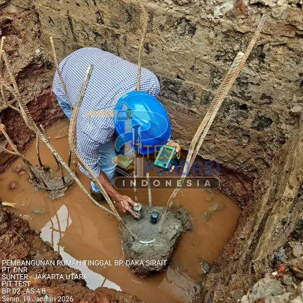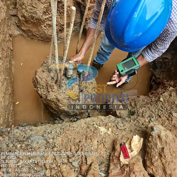 Pekerjaan ini merupakan kegiatan pengujian integritas tiang pondasi menggunakan layanan PIT Test (Pile Integrity Test) yang dilakukan oleh Test Pondasi Indonesia untuk mendukung pembangunan rumah tinggal yang dikelola oleh PT. DNR di kawasan Sunter, Jakarta Utara. Pengujian dilakukan untuk memastikan bahwa tiang pondasi yang terpasang tidak mengalami cacat struktural seperti retak, patah, atau perubahan penampang yang dapat mempengaruhi kekuatan bangunan.